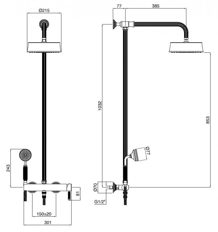 Душевая стойка со смесителем для верхнего и ручного душа, хром Cezares OLIMP-CD-01-L