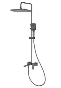Душевая система Splenka S01.24.09. Цвет: графит. Материал: латунь. Управление: однорычажное. Механизм: керамический картридж. Излив: поворотный. Аэратор. Стандарт подводки: G 1/2. Форма верхнего душа: прямоугольная. Размер верхнего душа (ШхД): 320х210 мм. Количество режимов струи ручного душа: 3. Регулируемая душевая штанга: 620-1200 мм. Монтаж: на стену.