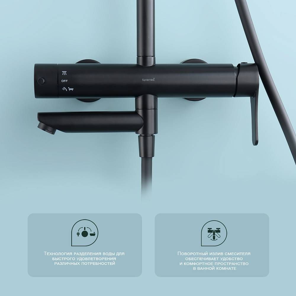 Душевая стойка Splenka S223.24.06 с термостатом чёрный купить