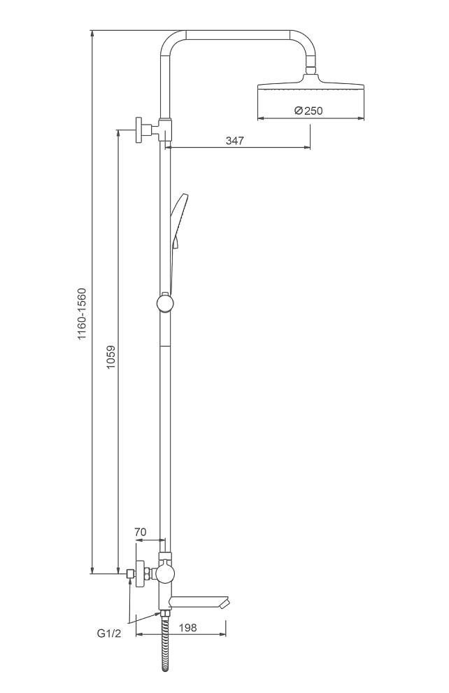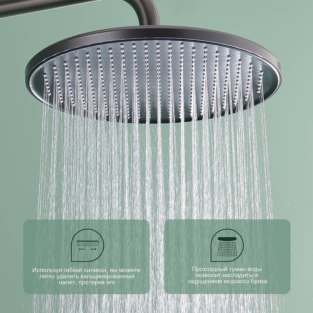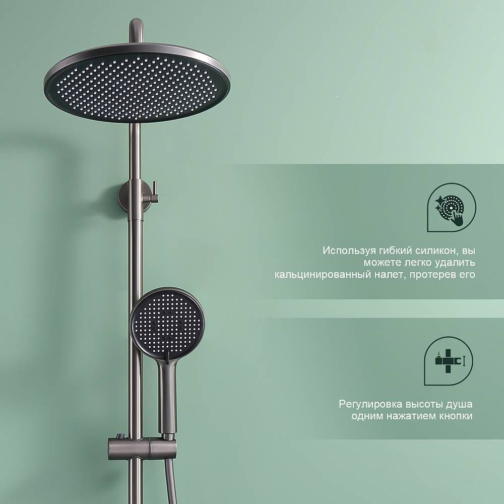 Душевая система с термостатом Splenka S223.26.09, графит. Душевая система термостатическая подходит для ванны и душа. Излив у системы поворотный. Излив - функция переключения режима. Верхний душ имеет круглую форму. Верхний душ - ∅250мм. Ручная лейка у системы 3-х режимная. Лейки изготовлены из авс-пластика.