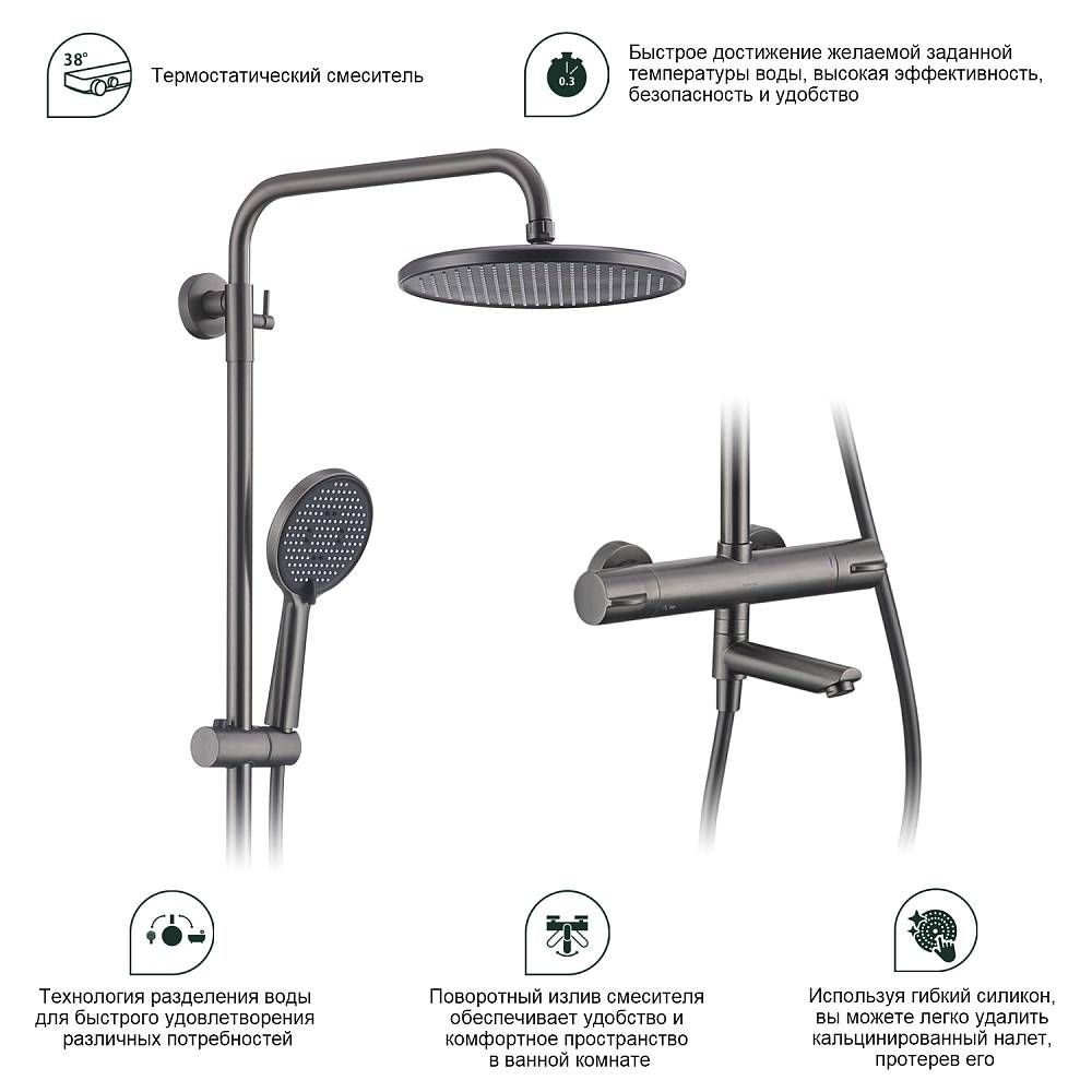 Душевая стойка Splenka S223.26.09 с термостатом графит купить
