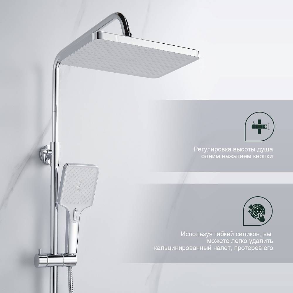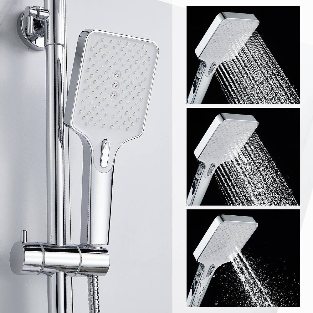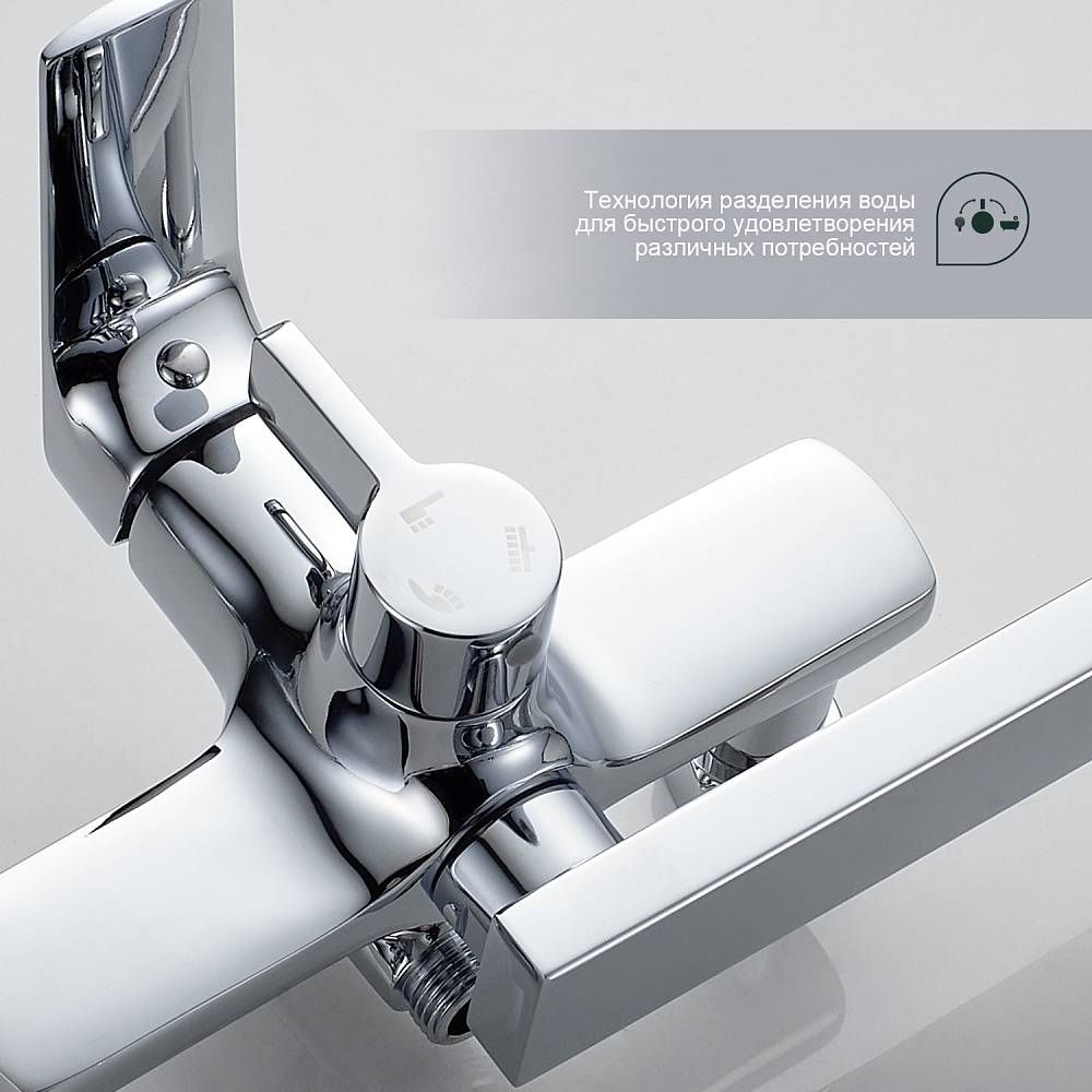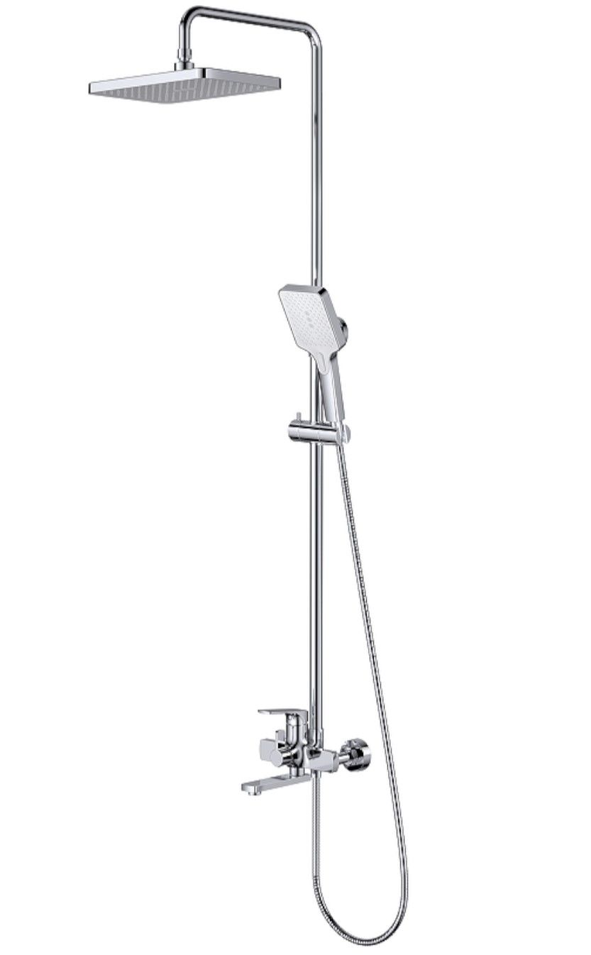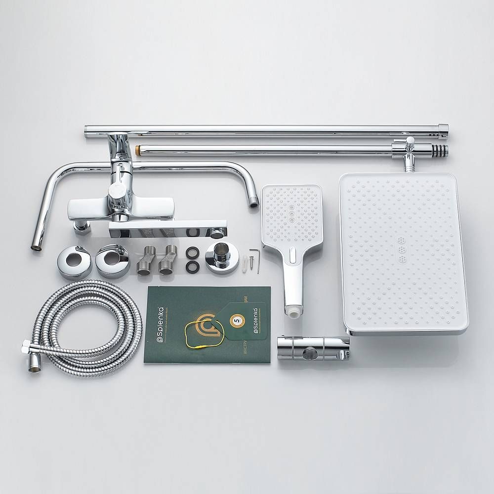 Душевая система Splenka S30.24, хром. Душевая система подходит для ванны и душа. Излив у системы имеет функцию переключения режима подачи воды. Верхний душ имеет прямоугольную форму размером 32 на 21 см. Ручная лейка у системы 3-х режимная. Лейки изготовлены из авс-пластика.