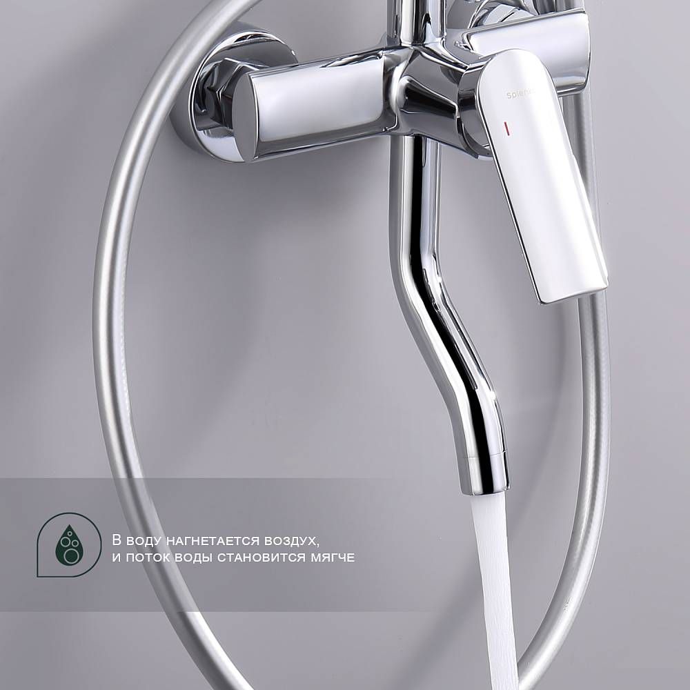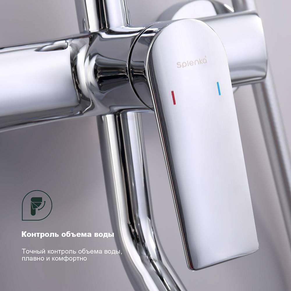 Душевая система Splenka S50.24, хром. Душевая система подходит для ванны и душа. Верхний душ имеет круглую форму размером 25 см. Ручная лейка у системы 3-х режимная. Лейки изготовлены из авс-пластика.