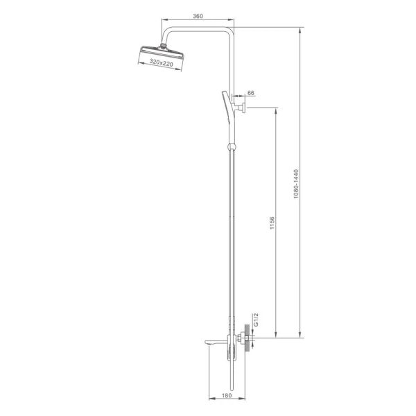 Регулируемая душевая штанга: 1080-1440 мм