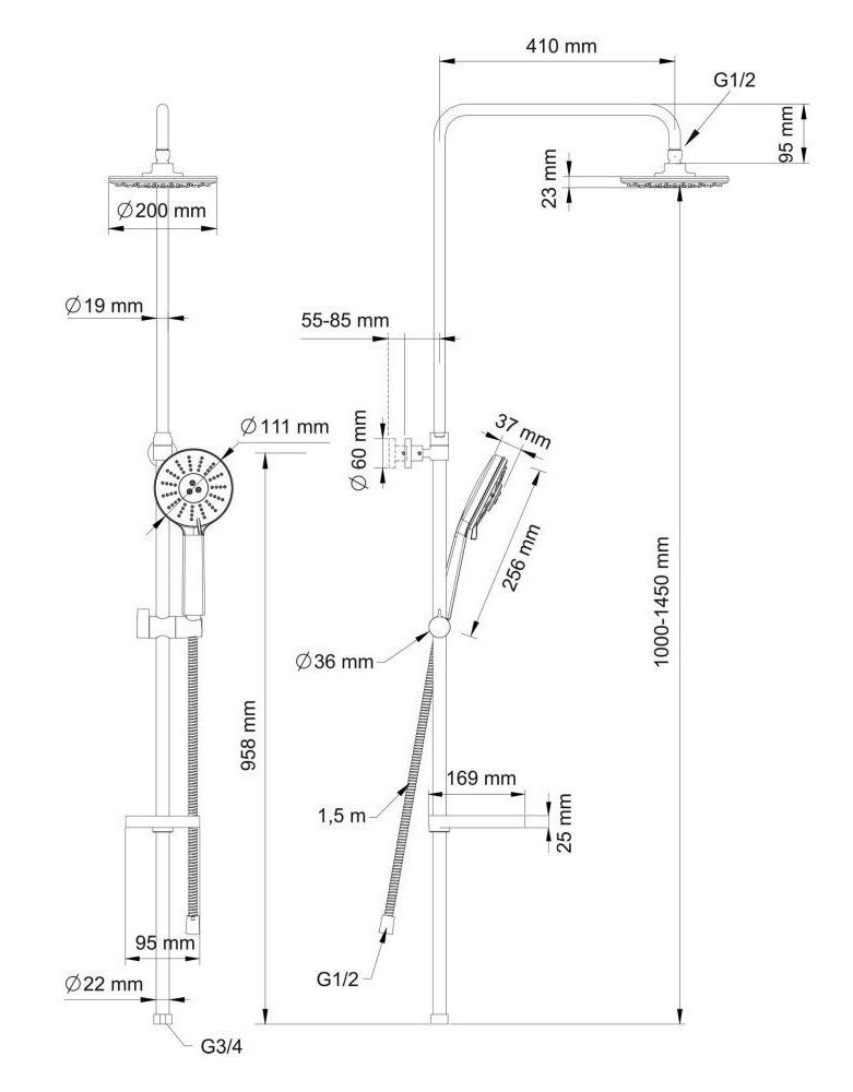 - верхний душ (душевая головка) с регулировкой наклона;