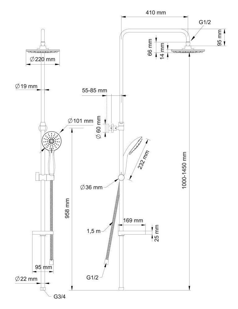 Душевая стойка Swedbe Calypso 5072 без смесителя хром купить