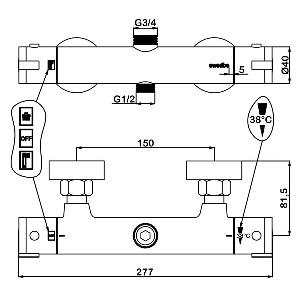 ПРЕИМУЩЕСТВА: - термостатический смеситель для душа в комплекте; - керамическая кран-букса;