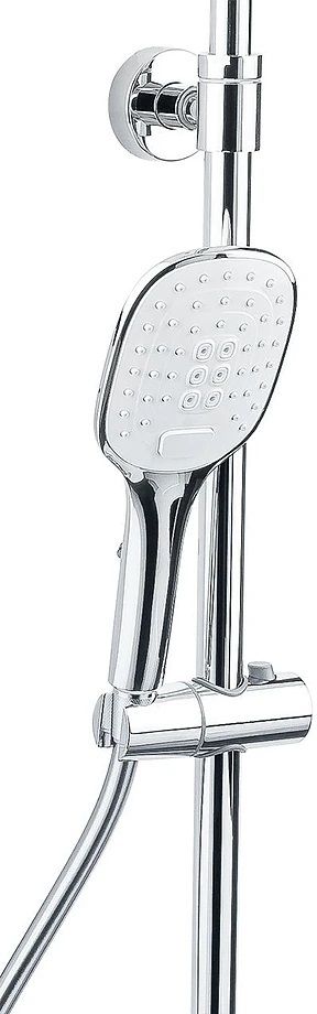 Комплект включает тропический верхний душ с регулируемым углом наклона и телескопическую штангу, высоту которой можно настраивать от 970 до 1450 мм для удобства пользователей разного роста. Ручная лейка предлагает три режима струи: интенсивный, мягкий и массажный, а дивертор с керамическими пластинами обеспечивает плавное и точное переключение между режимами. Длина шланга ручного душа составляет 1750 мм, обеспечивая свободу движений во время использования.