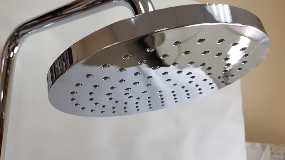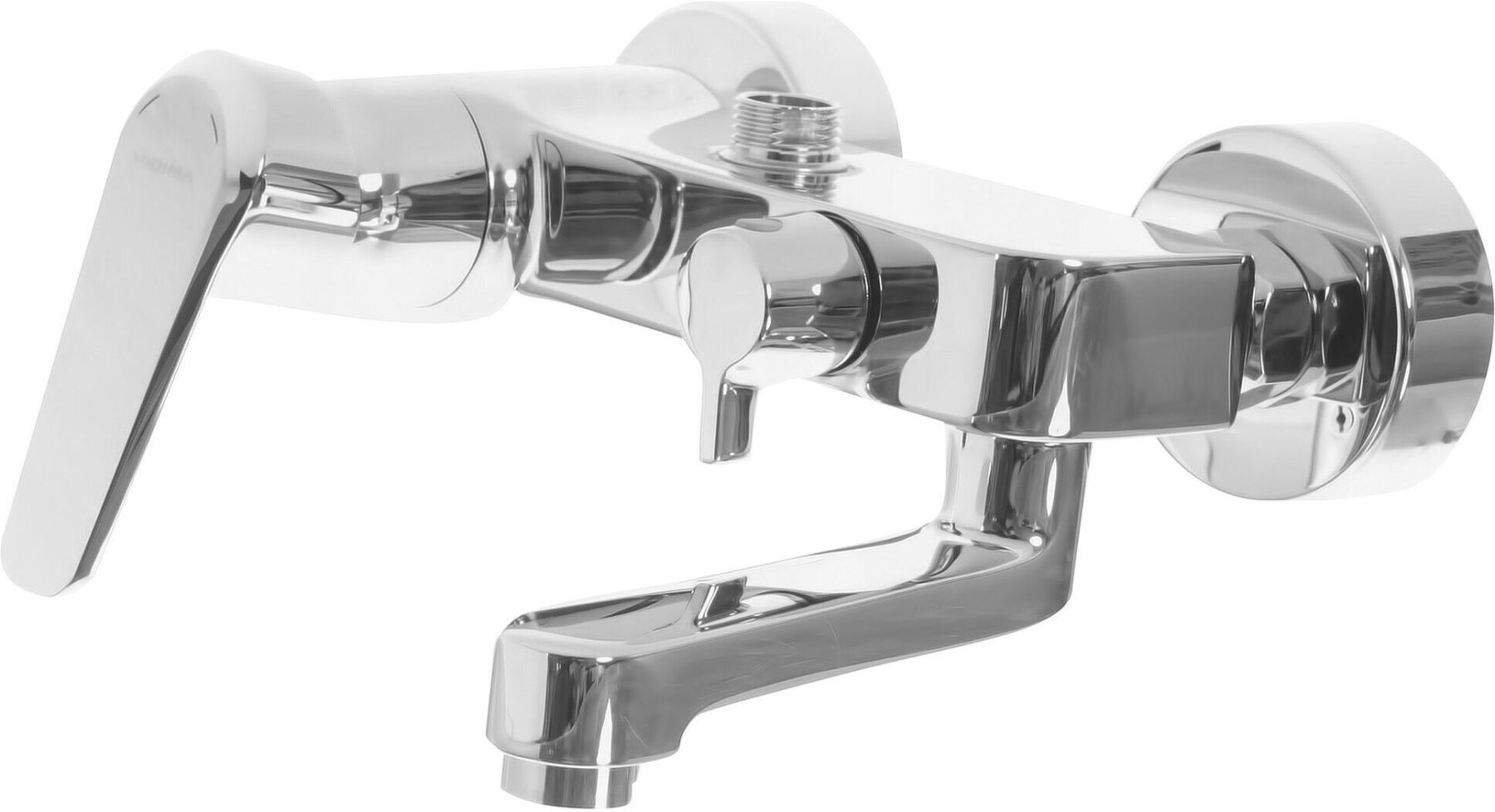 BALANCE Душевая система со смесителем для ванны/душа. Литой поворотный излив 125 мм. Верхний душ 200 мм, металлический шланг 1500 мм; ручная лейка Ø80 мм (B9401AA) 3-функциональная.