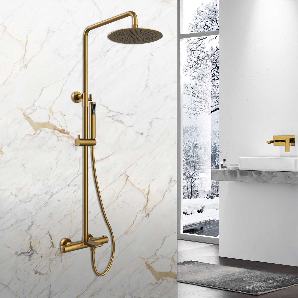 Душевая стойка Vincea Vogue VSFS-1V1TBG термостатическая, брашированное золото купить