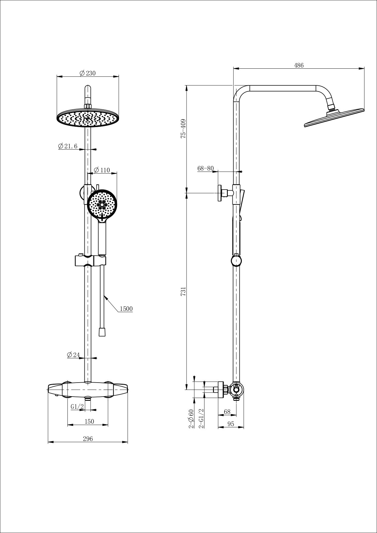 Душевая стойка Wonzon & Woghand Capsule WW-B3031-A-BG с термостатом брашированное золото купить
