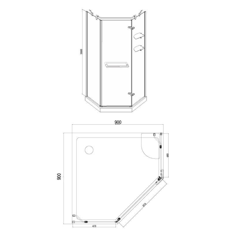 Душевое ограждение Azario MONTREAL AZ-NWG3231 900 L GOLD