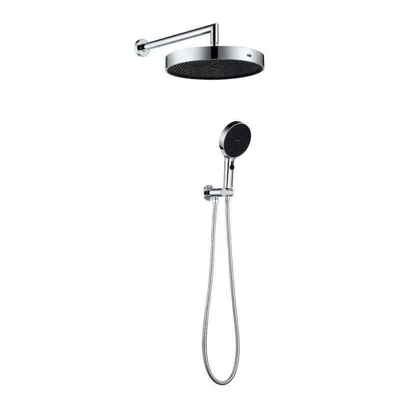 Многорежимная ручная лейка (базовый, массажный и турборежим) и двухфункциональный верхний душ диаметром 30см(тропический душ и массажный каскад). Форсунки душевой лейки и верхнего душа из ультромягкого силикона. Материал леек-пластик. Режимы верхнего душа переключаются при повторном переключении дайвертера смесителя. Декор леек в виде сот, большая цветовая палитра и приемлемая стоимость за комплект со шлангом и двумя лейками.