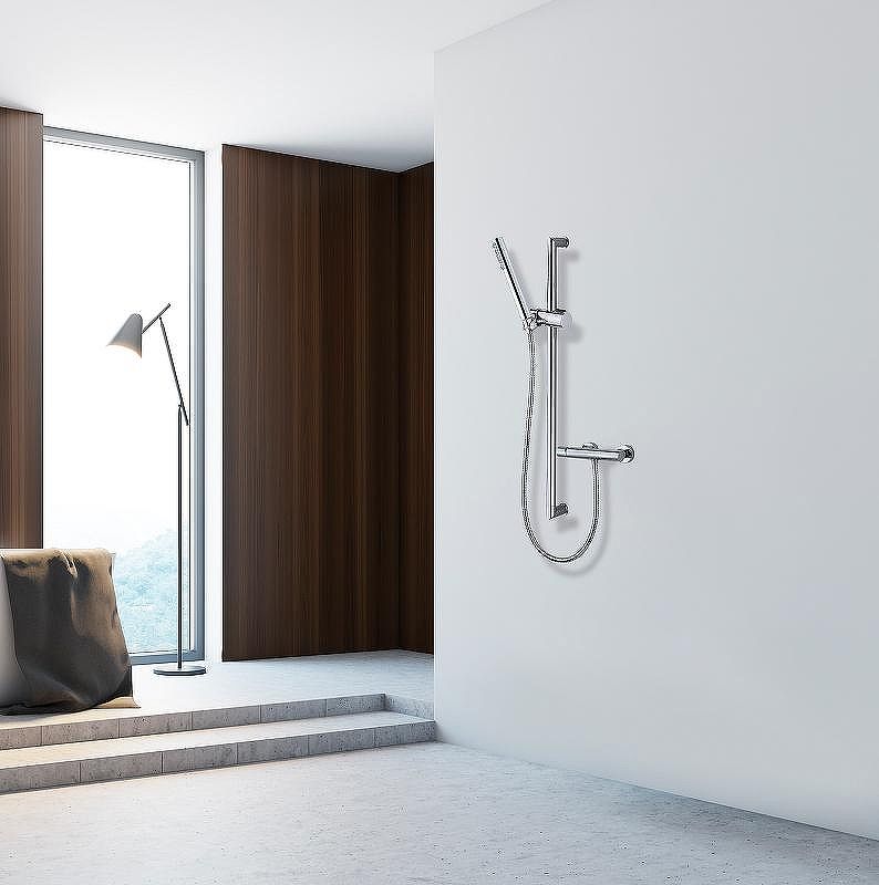 Модель имеет регулируемую высоту, что позволяет настроить ее под нужный угол для максимально комфортного использования. Также идет шланг длиной 150см, который обеспечивает удобство использования душа.