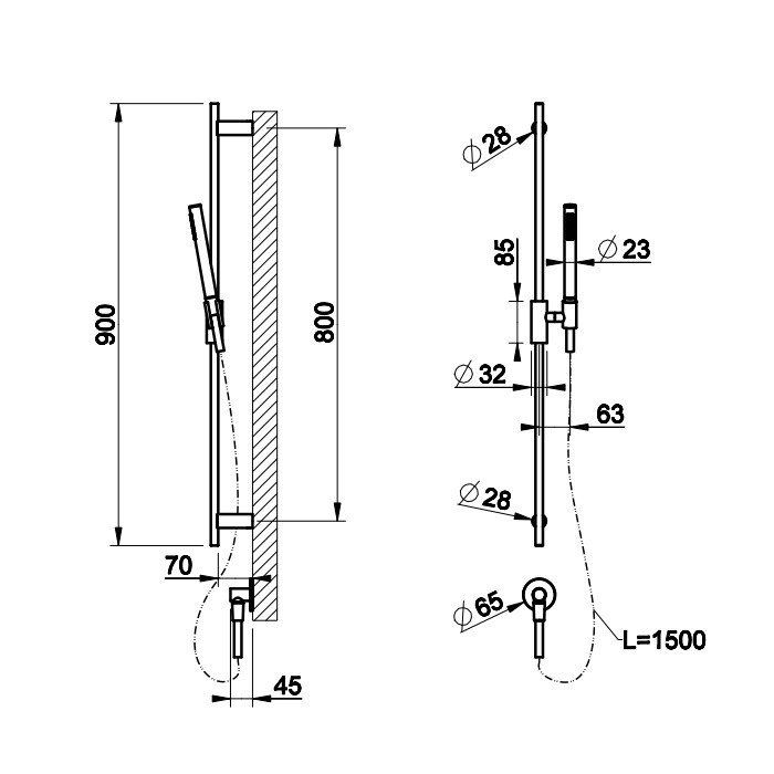 Шланг длиной 1500 мм обеспечивает свободное движение и гибкость в использовании, позволяя вам легко маневрировать во время душа. Он также оснащен надежным шланговым подсоединением, что обеспечивает легкость установки и стабильную работу гарнитура.