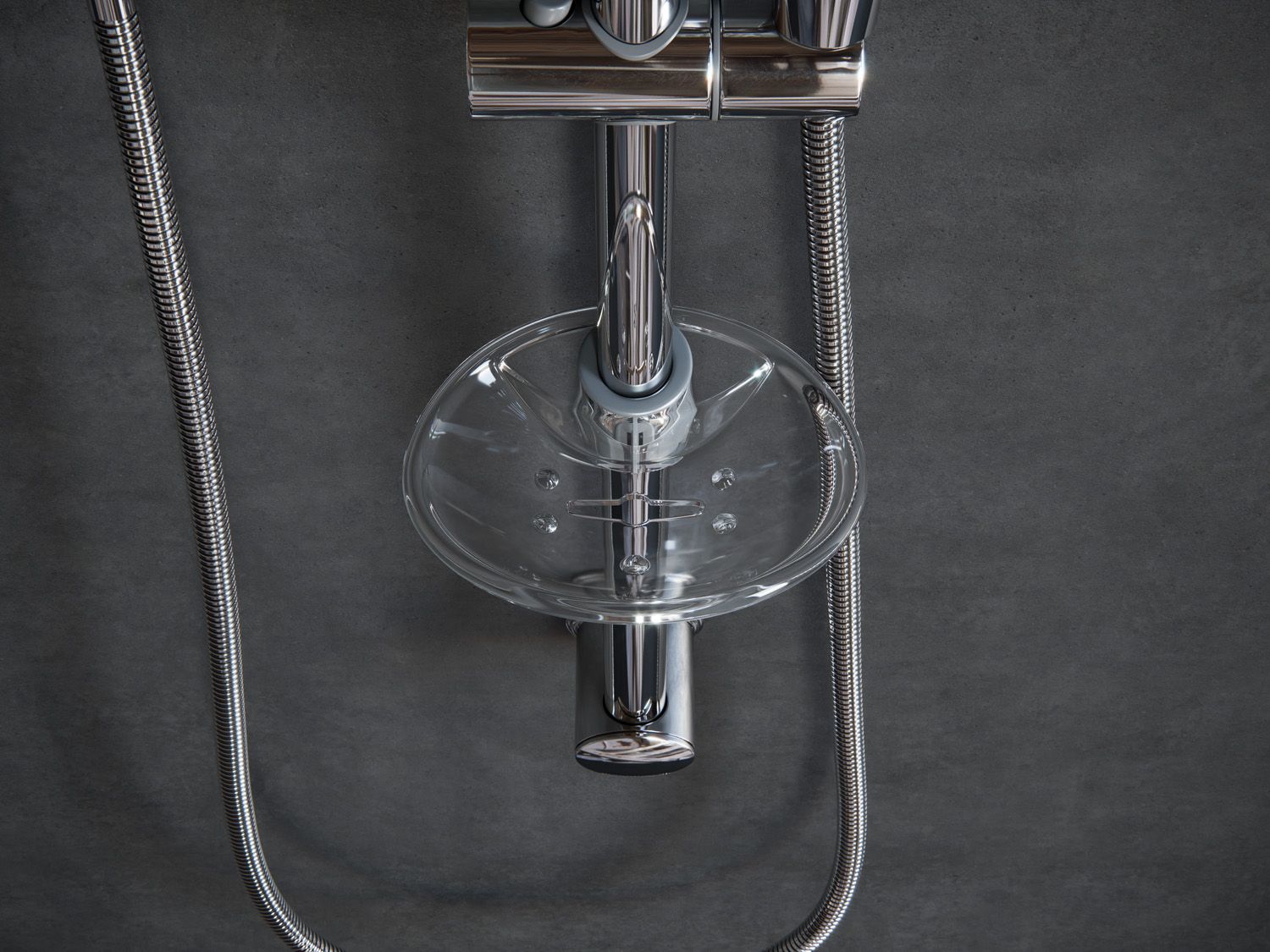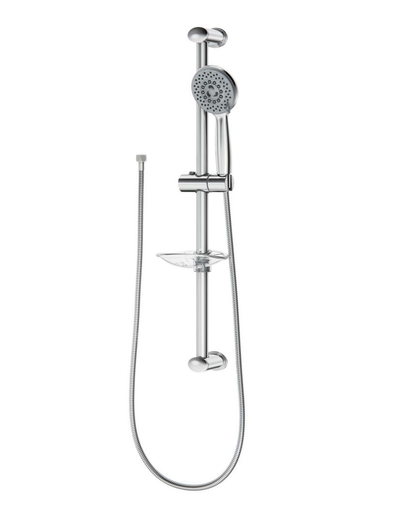 Комплектация - ручной душ, держатель лейки поворотный, мыльница, душевой шланг, набор для монтажа.