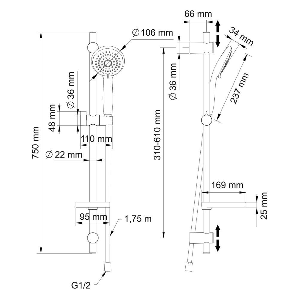 Размер ручного душа, см:10.6
