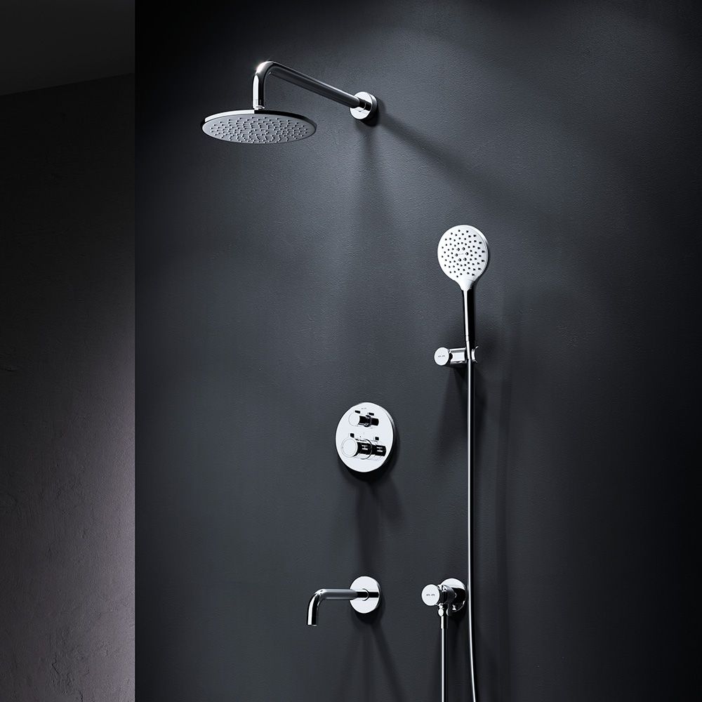 Набор встроенного оборудования X-Joy - идеальное решение для вашей ванной комнаты. Встроенный механизм освобождает ванную комнату от лишних деталей превращая пространство в идеальное место для себя. Набор включает в себя: верхний тропический душ 22 см, ручной душ, держатель ручного душа и смеситель.