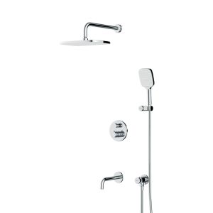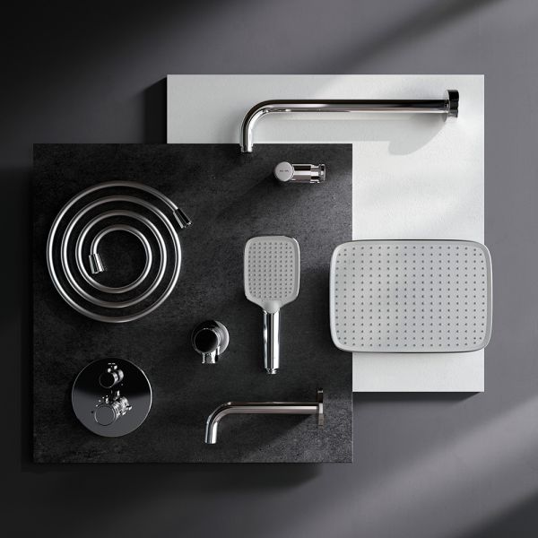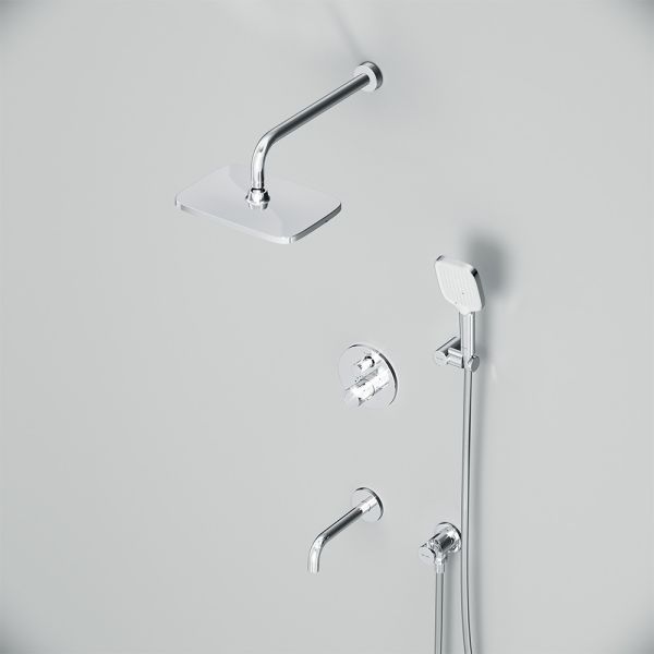 Набор встроенного оборудования X-Joy - идеальное решение для вашей ванной комнаты. Встроенный механизм освобождает ванную комнату от лишних деталей  превращая пространство в идеальное место для себя. Набор включает в себя: верхний тропический душ 21x30 см, ручной душ, держатель ручного душа и смеситель.