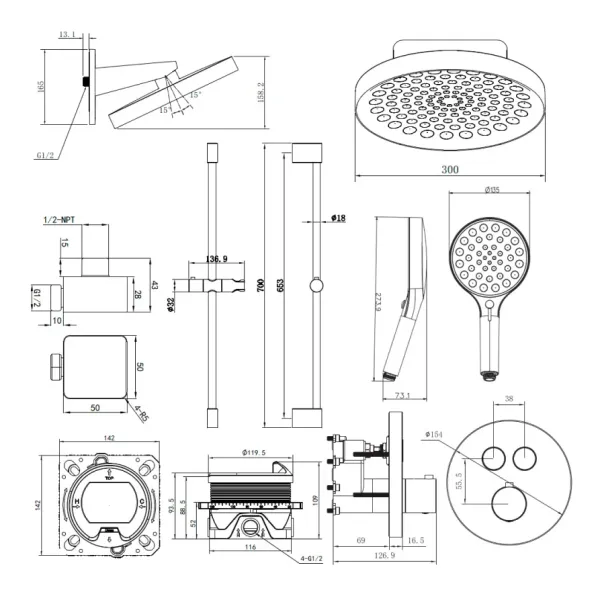 Душевой комплект AQUAme AQM8403MB с термостатом чёрный матовый