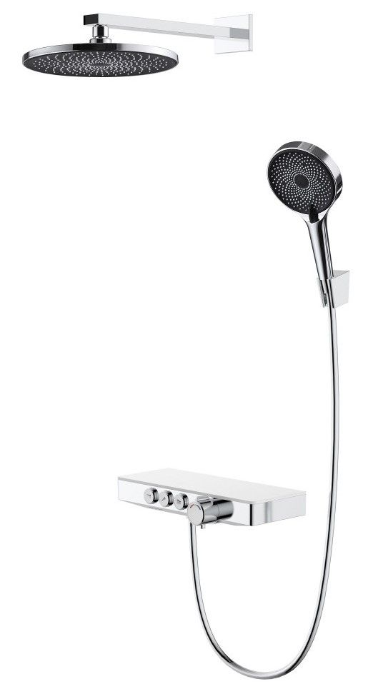 Душевой комплект BERGES MORANS - встраиваемый душевой комплект обладает трёхрежимной системой и включает в себя: Верхний Душ «Тропический ливень», Ручной Душ и Излив для наполнения ванны.Система оборудована термостатическим управлением, что позволяет поддерживать комфортную и неизменную температуру воды, а так же оберегает от ожогов.Верхний душ диаметром 25 см обеспечивает комфортное принятие SPA процедур, держатель верхнего душа имеет размер вылета из стены 40 см.Шланг для Ручного Душа выполнен из мягкого пластика длиной 150 см, что обеспечивает долгий срок службы, а так же гибкость, необходимую, для удобного применения.Форма корпуса смесителя выполнена в виде полочки из закаленного стекла, позволяя комфортно хранить необходимые принадлежности для душа.Трехфункциональный термостатВстраиваемая системаЛатунный корпусСталинитовая пластина и пластиковая крышка для защиты от ожоговДушевой шланг 150 см из ПВХМатериал держателя верхнего душа: нержавеющая стальНасадка верхнего душа диаметром 25см, ABS пластикВылет верхнего душа: 40 смМатериал ручного душа: ABS пластикСистема против известковых отложенийСтандарт подводки: 1/2"Кол-во режимов ручного душа: 3
