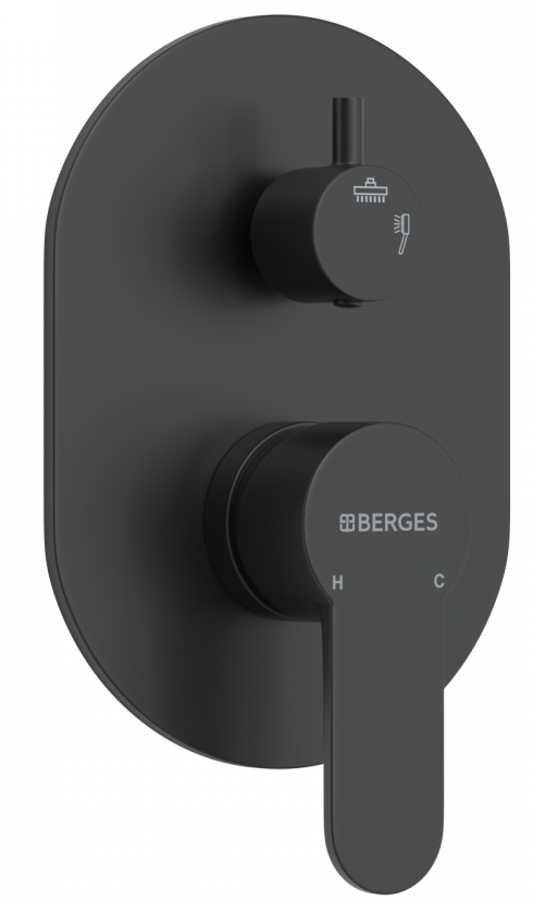 Душевой комплект BERGES VENTAS 3O - встраиваемый душевой комплект обладает трёхрежимной системой и состоит из верхней лейки - «тропического ливня», ручного душа, излива и смесителя.Лейка верхнего душа имеет инновационную систему самоочистки в виде гибких силиконовых вставок на форсунках душа, которые защищают изделие от известковых отложений. Верхний душ изготовлен из нержавеющей стали. Ручной душ – из ABS пластика. Оба душа имеют черное матовое покрытие, которое выглядит безупречно на протяжении всего периода эксплуатации.Шланг выполнен из нержавеющей стали (внутри epdm), смеситель с латунным корпусом имеет керамический картридж с пропускной способностью 28 л/мин, все держатели и кронштейны сделаны из латуни и нержавеющей стали.Скрытый монтаж комплекта позволяет создавать красивое и эргономичное внутреннее пространство всего помещения.