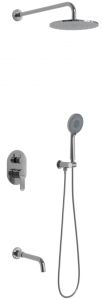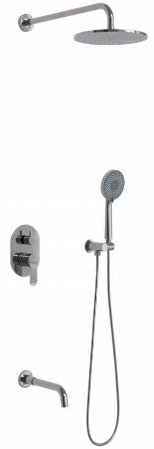 Душевой комплект BERGES VENTAS 3R - встраиваемый душевой комплект обладает трёхрежимной системой и состоит из верхней лейки - «тропического ливня», ручного душа, излива и смесителя.Лейка верхнего душа имеет инновационную систему самоочистки в виде гибких силиконовых вставок на форсунках душа, которые защищают изделие от известковых отложений. Верхний душ изготовлен из нержавеющей стали. Ручной душ – из ABS пластика. Оба душа имеют хромоникелевое покрытие, которое выглядит безупречно на протяжении всего периода эксплуатации.Шланг выполнен из нержавеющей стали (внутри epdm), смеситель с латунным корпусом имеет керамический картридж с пропускной способностью 28 л/мин, все держатели и кронштейны сделаны из латуни и нержавеющей стали.Скрытый монтаж комплекта позволяет создавать красивое и эргономичное внутреннее пространство всего помещения.