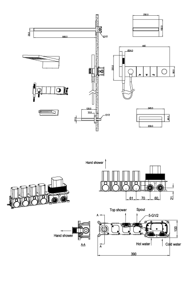 - Размер верхнего душа, см:55