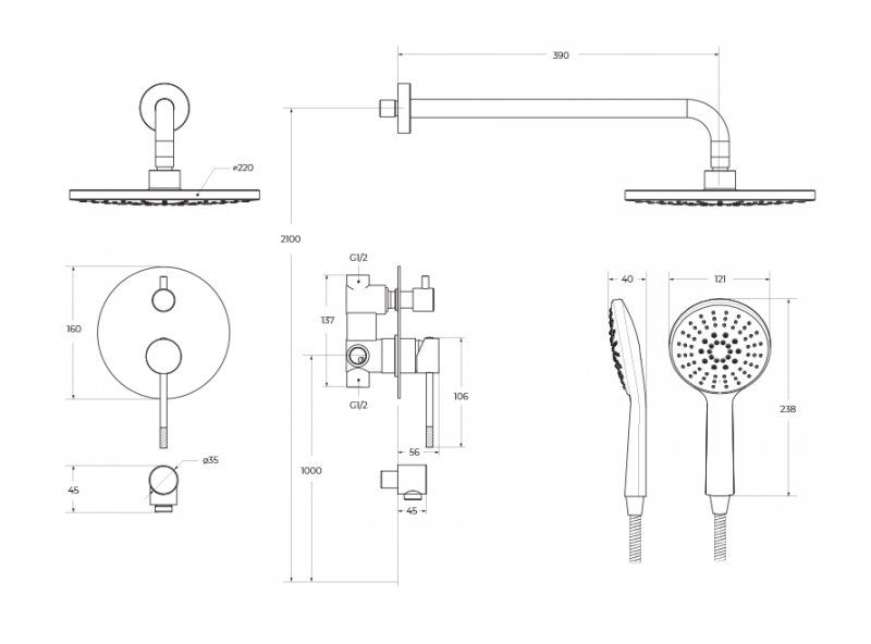 - Размер верхнего душа, см:22