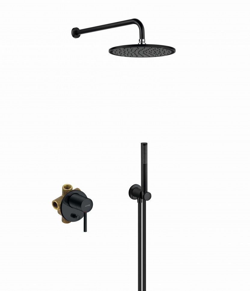 Душевой комплект Kludi Bozz 387363976 со смесителем чёрный матовый