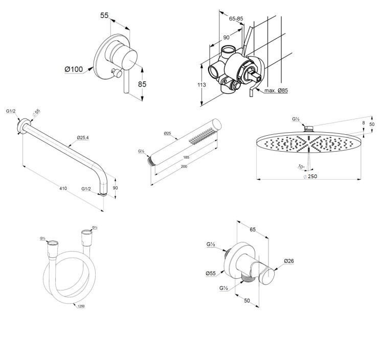 Комплект для душа KLUDI BOZZ 38736N076 7 в 1 верхний душ 250 мм