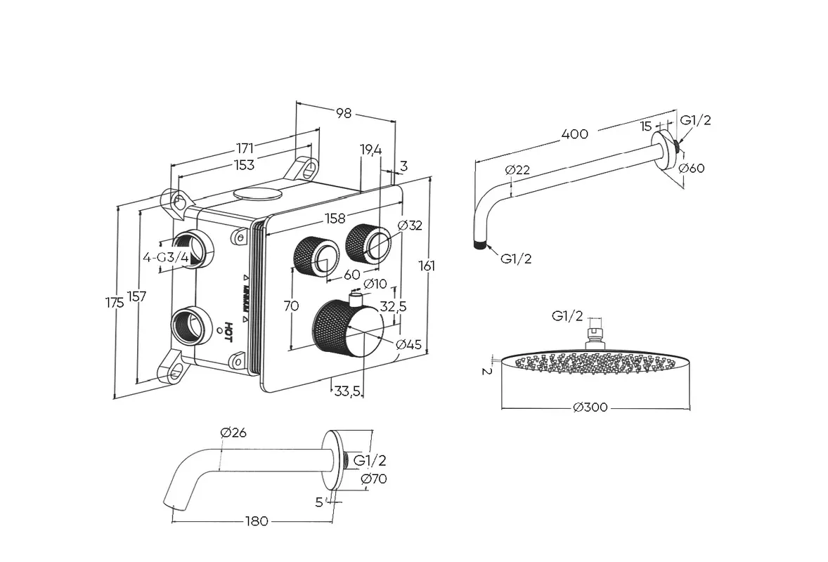 Душевой комплект Milleau Tissage TERMO 2SBIT/324.1-CR хром