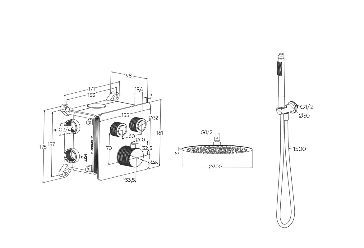 Душевой комплект Milleau Tissage TERMO 2SBIT/802Q-GB черный