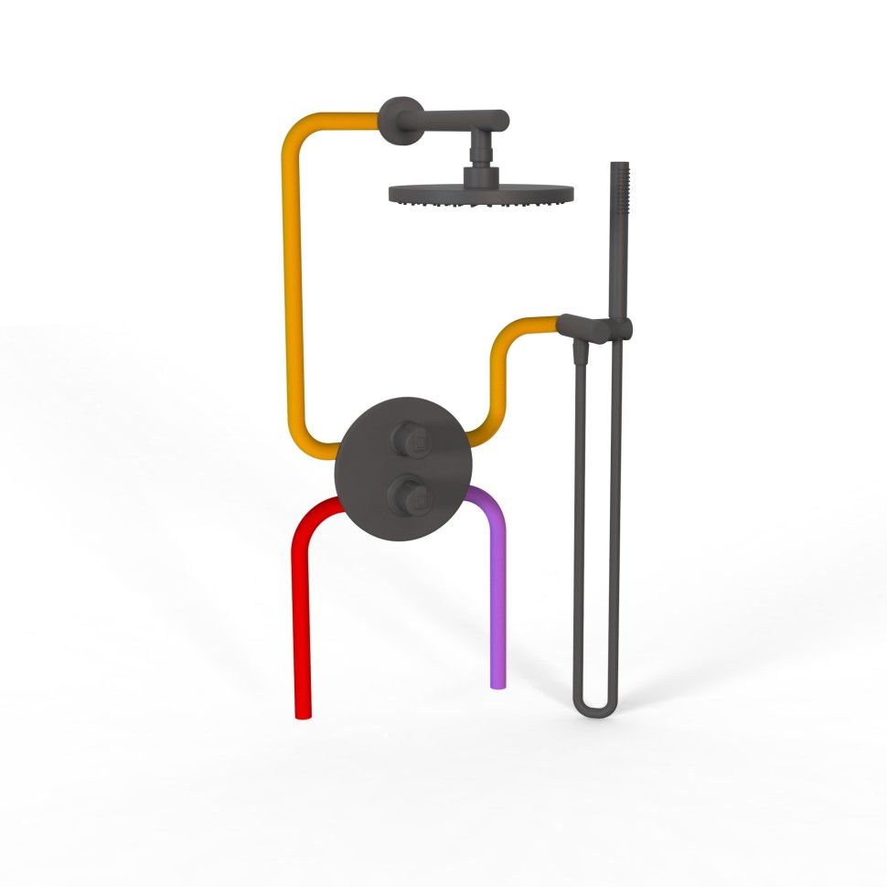 Душевой комплект Paini Cox 78PZSET26911THSH с термостатом чёрный матовый