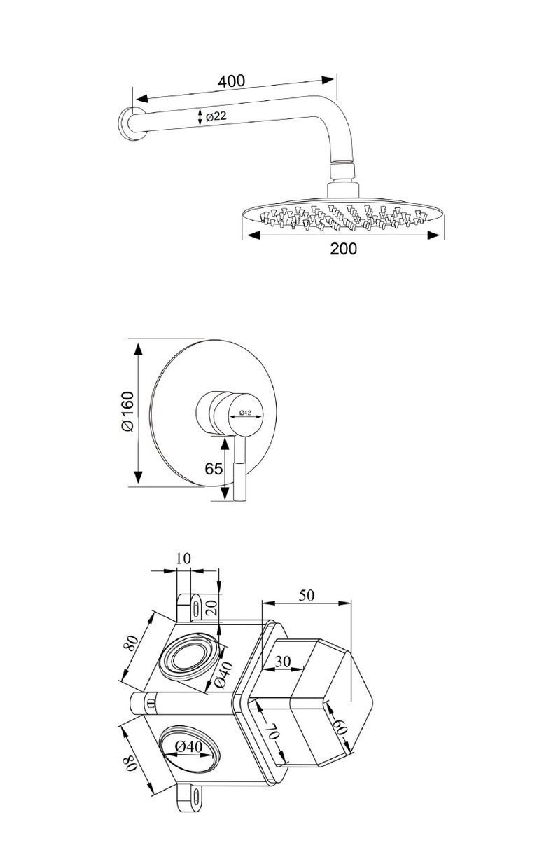Душевой комплект РМС SUS129-1 нержавеющая сталь