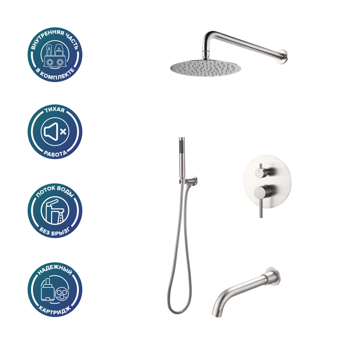 Душевой комплект РМС SUS129-1S нержавеющая сталь купить