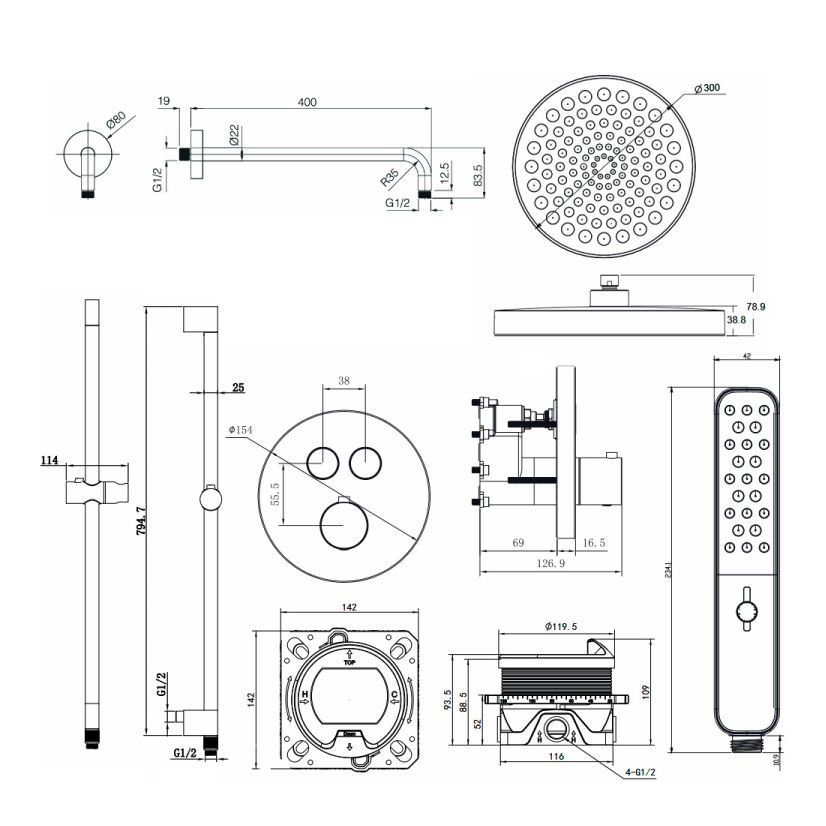 Душевой комплект с термостатом AQUAme AQM8401CR хром купить