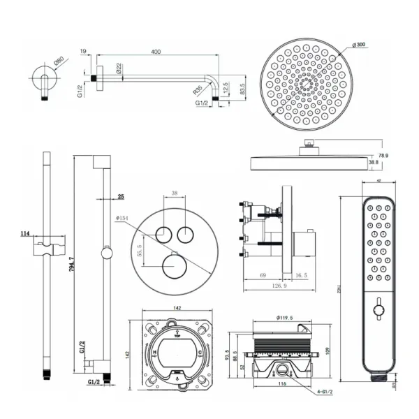 Душевой комплект с термостатом AQUAme AQM8401MB чёрный матовый купить