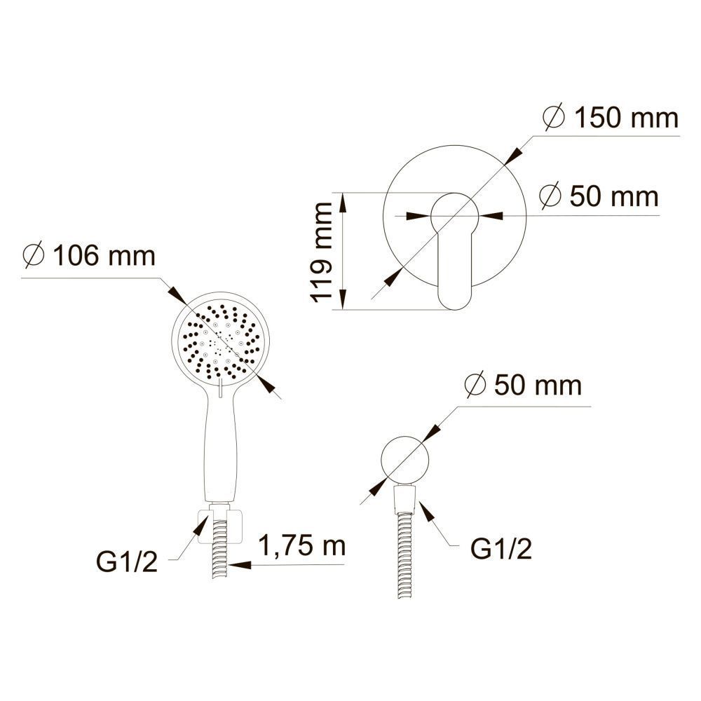Душевой комплект Swedbe Platta 5532 с магнитным держателем хром