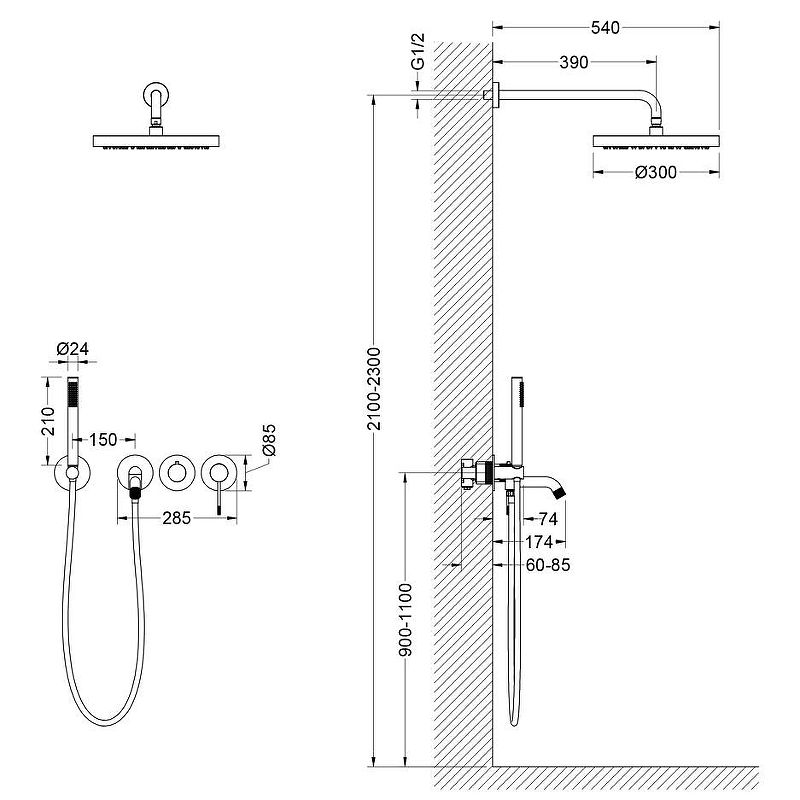 Размер верхнего душа: Ø 300 мм
