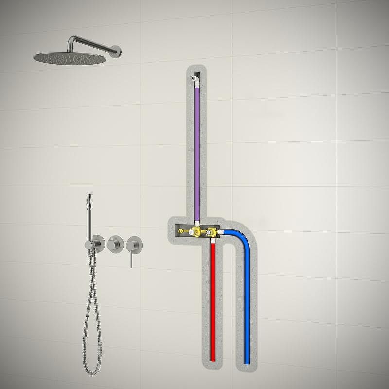 Душевая система встроенная с настенным душем с круглой лейкой в стиле модерн