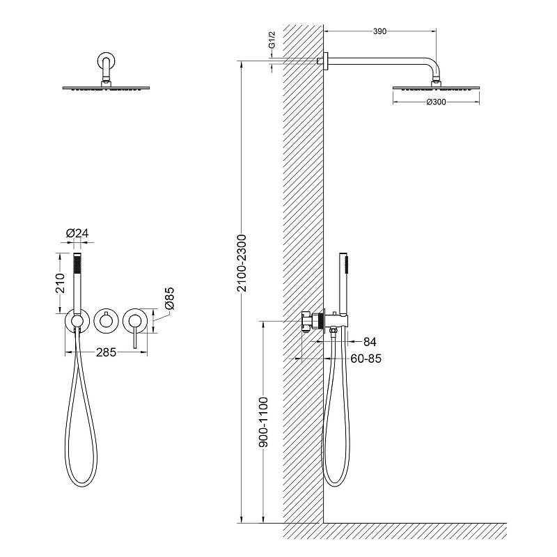 Размер верхнего душа: Ø 300 мм