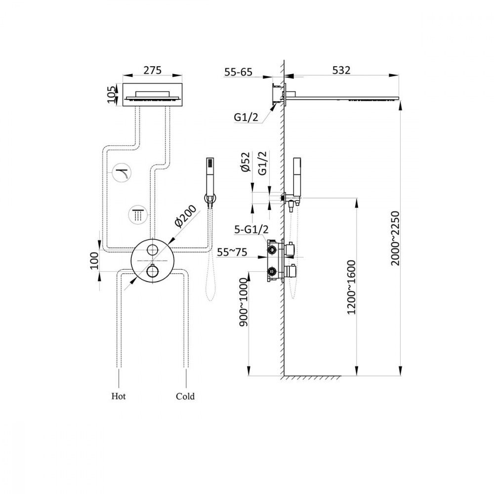 Душевая система Vincea, встраиваемая, термостатическая, хром, VSFW-104TCHРазмер верхнего душа: 53.2 x 27.5 см