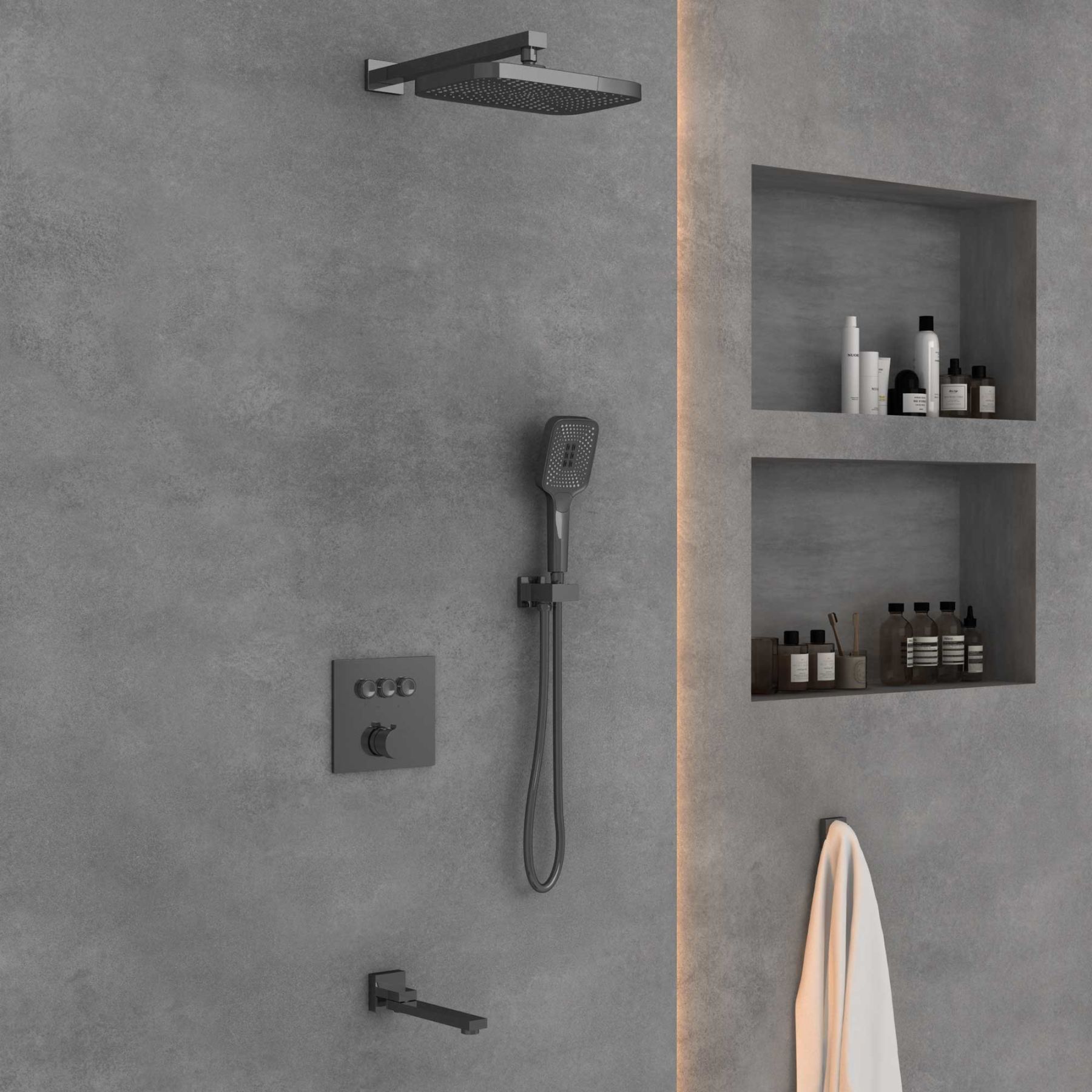 Душевой комплект VSFW-4311GM встраиваемый, трехрежимный, вороненая сталь