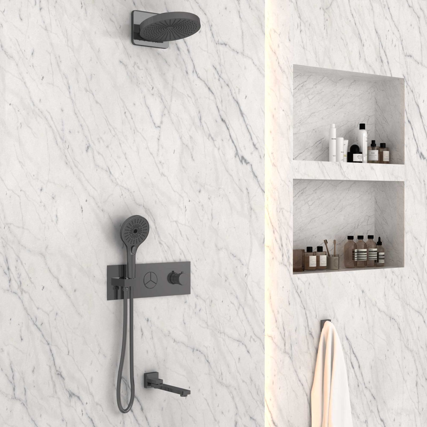 Душевой комплект Vincea VSFW-432TI1GM встраиваемый, трехрежимный, вороненая сталь