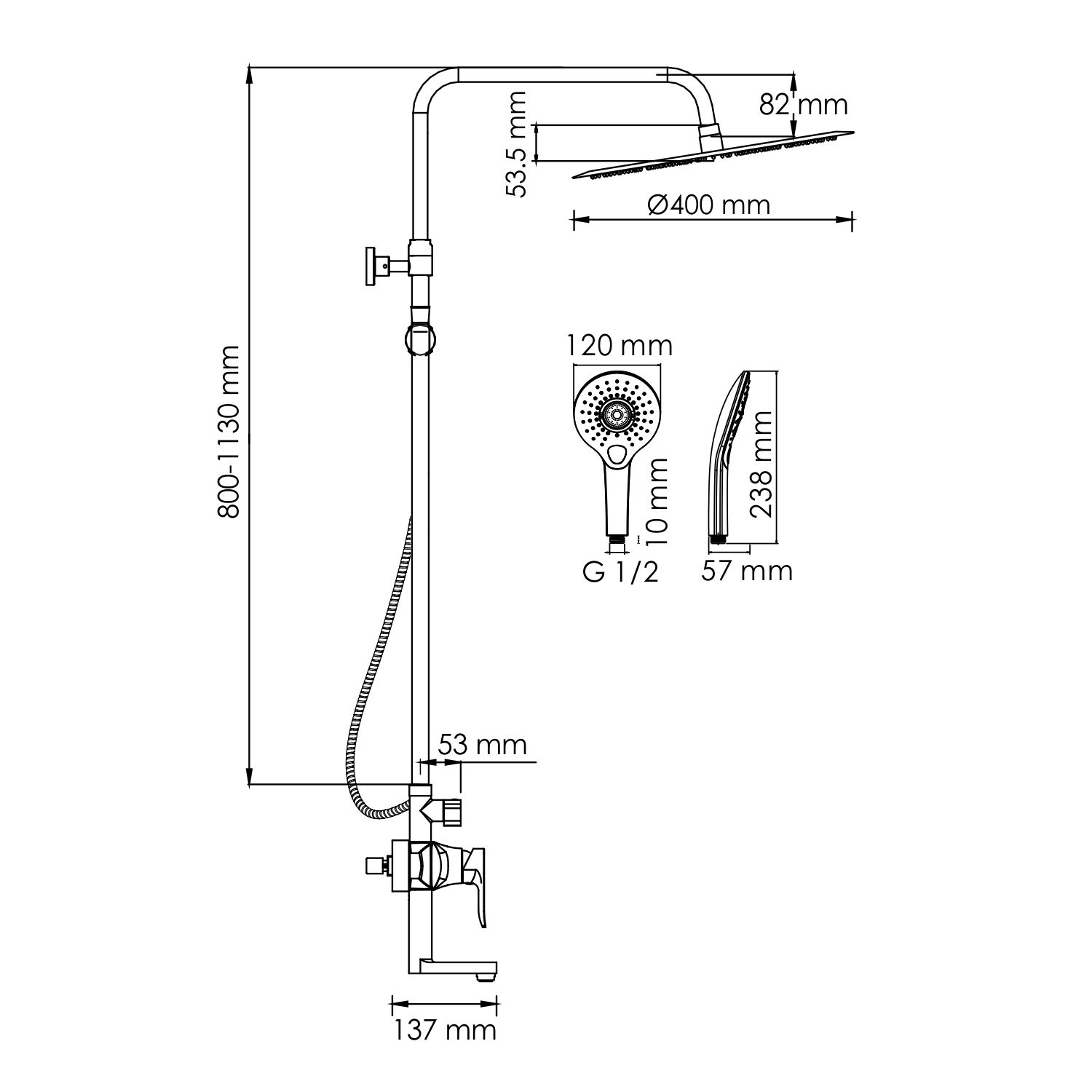 Размер верхнего душа, см:40