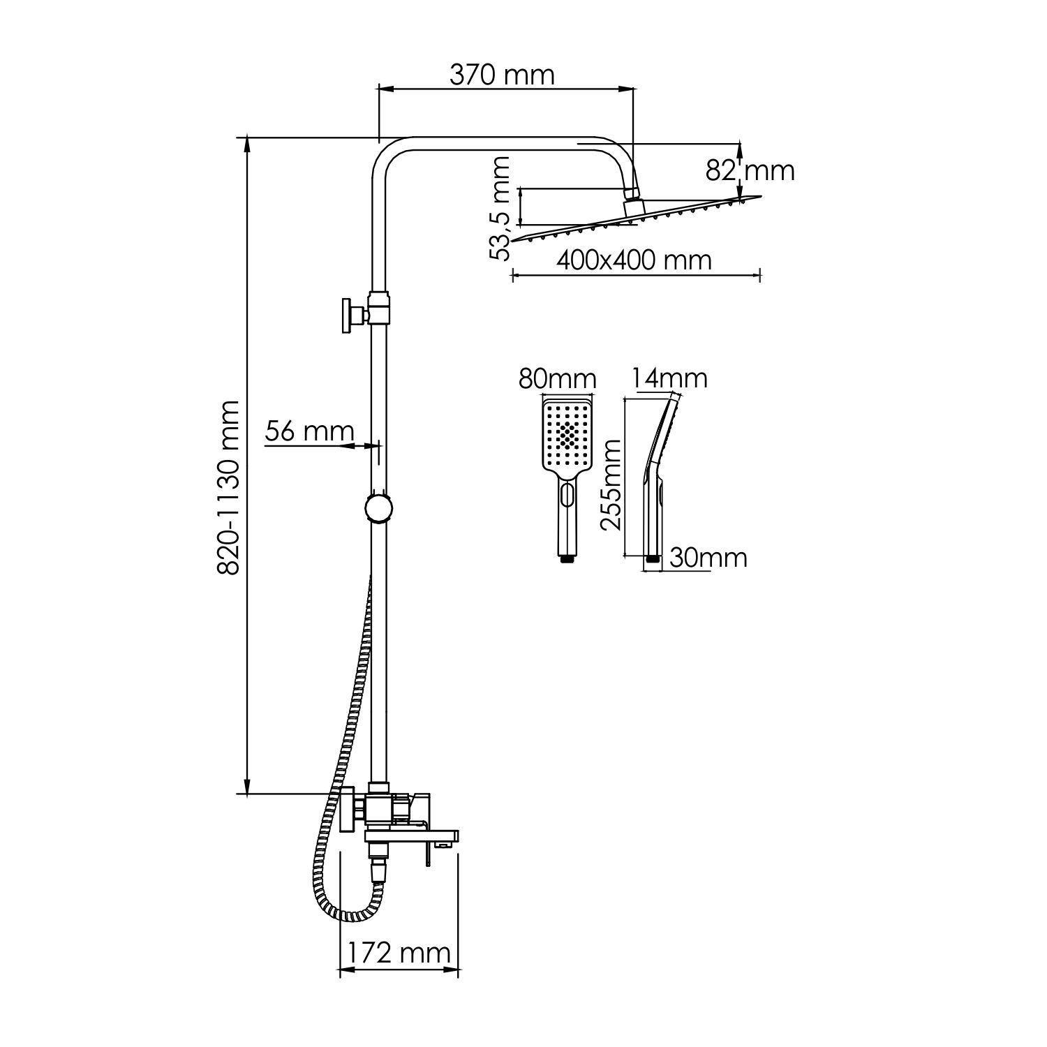 Стойка для душа, Ø 22 мм регулируемая по высоте