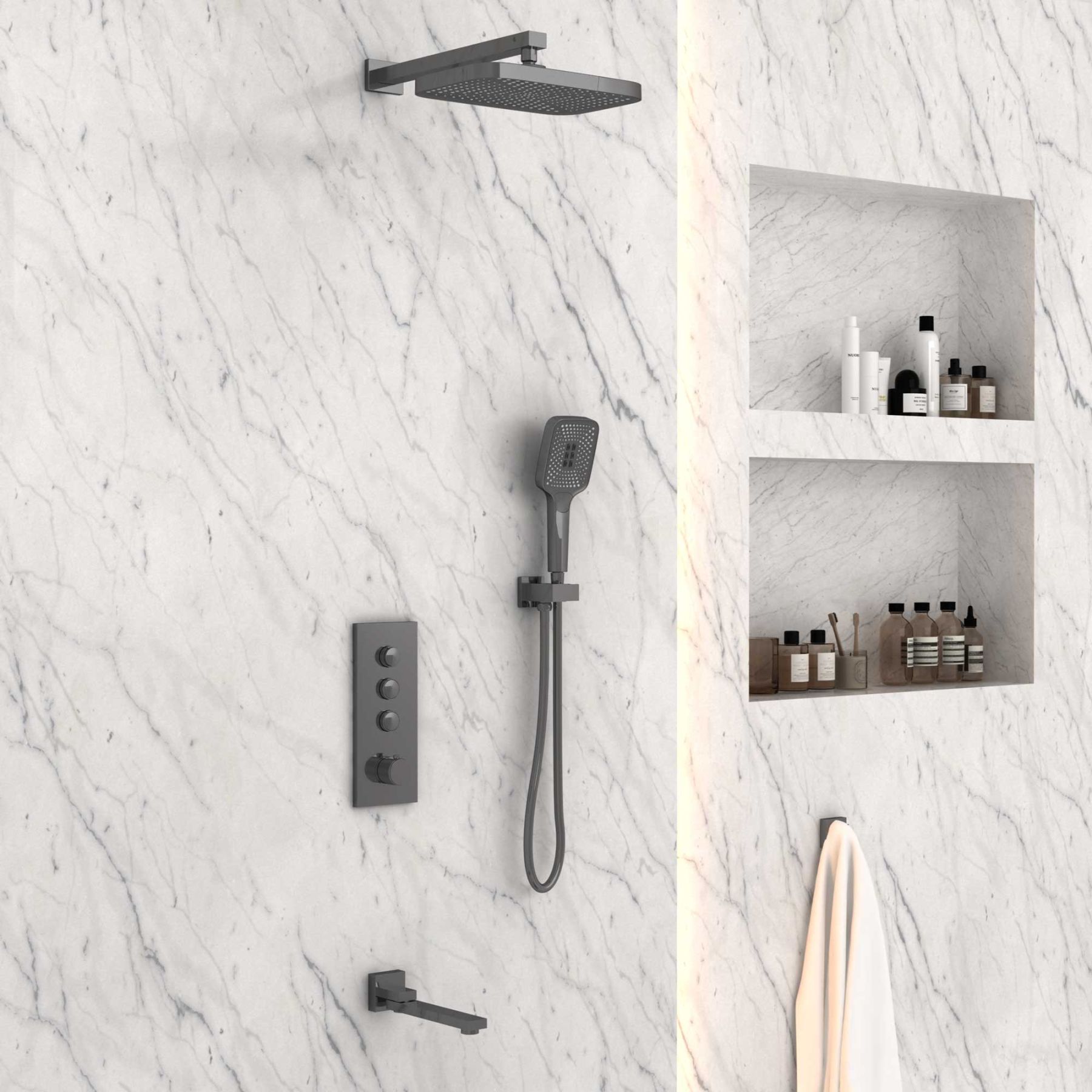 Душевой комплект Vincea VSFW-433T1GM встраиваемый, термостатический, трехрежимный, вороненая сталь купить