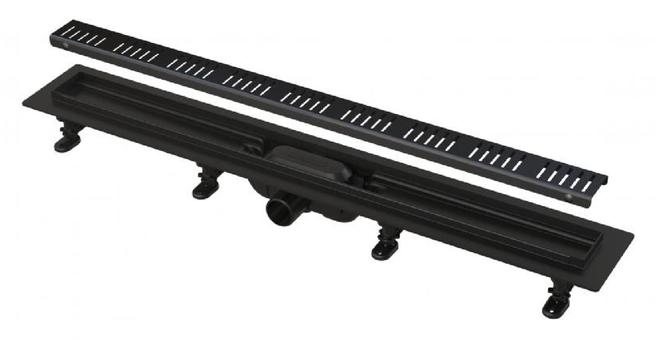 Душевой лоток AlcaPlast с порогами с перфорированной решетки 65см черный матовый APZ10BLACK-650M