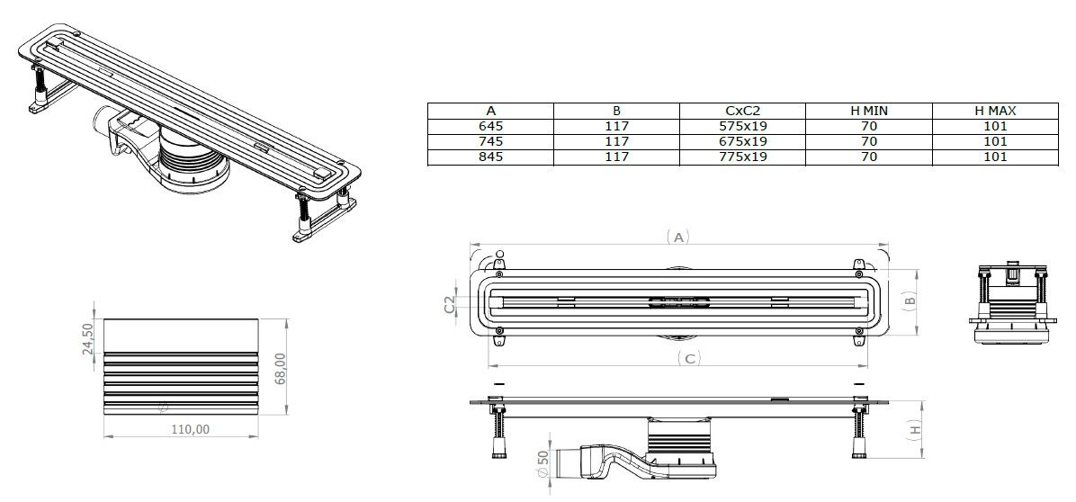 Душевой лоток Allen Brau Liberty 9.50000.SS для поддона 600 мм нержавеющая стальКласс нагрузки K=300 кг